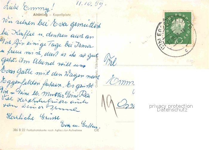 72846770 alte Postkarte Altoetting Kapellplatz postalisch gelaufen Erhaltung siehe scans [KathaD81] KatCode: 11110009171111