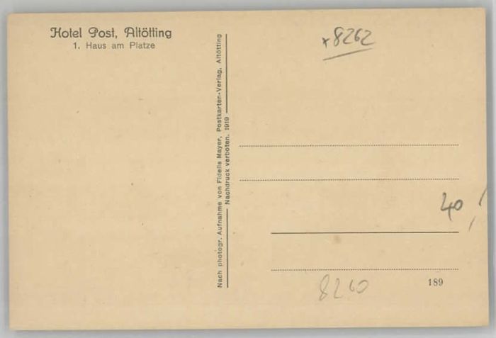 40217464 Altoetting otel Post ungelaufen ca. 1920 KatCode 11110009171111