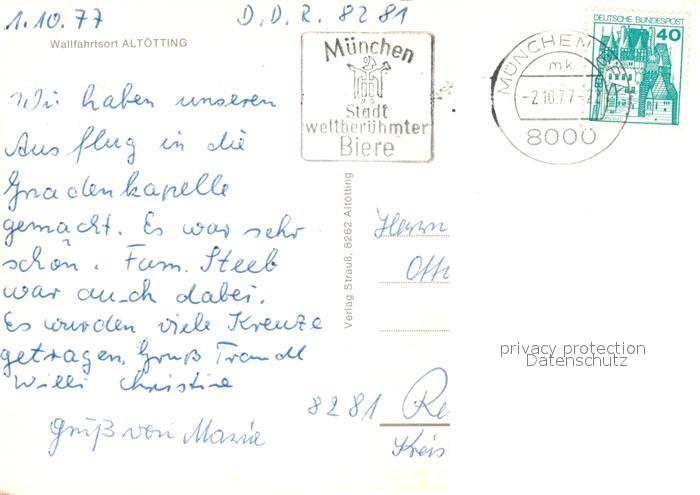 73013111 alte Postkarte Altoetting Pfarrkirche Kapelle Gnadenaltar Basilika postalisch gelaufen Erhaltung siehe scans [KathaD81] KatCode: 11110009171111