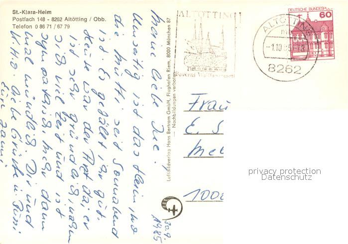 73667161 alte Postkarte Altoetting St Klara Heim Fliegeraufnahme postalisch gelaufen Erhaltung siehe scans [WerneD78] KatCode: 11110009171111