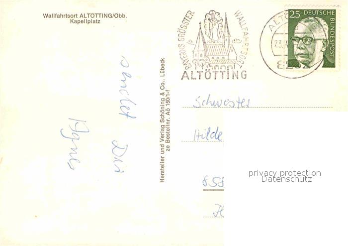 72641448 alte Postkarte Altoetting Wallfahrtsort Kapellplatz Gnadenkapelle Kirche Heiligenfigur postalisch gelaufen Erhaltung siehe scans [FriedD77] KatCode: 11110009171111