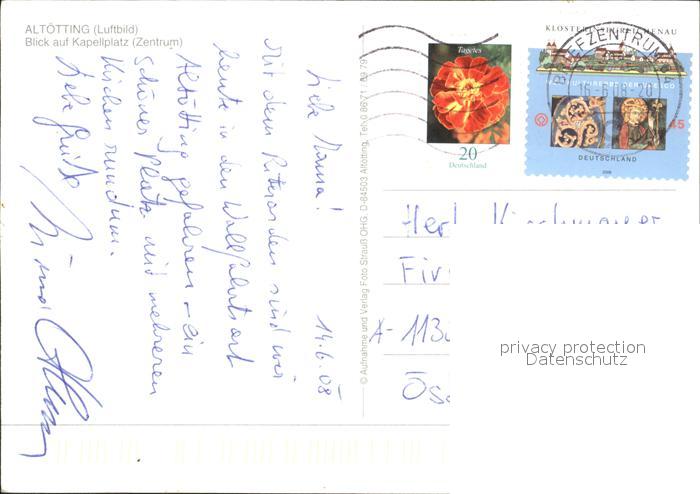 72296398 alte Postkarte Altoetting Zentrum Kapellplatz Fliegeraufnahme postalisch gelaufen Erhaltung siehe scans KatCode: 11110009171111