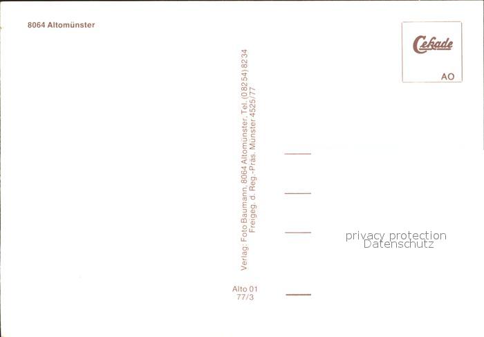 72133121 Altomuenster postalisch nicht gelaufen KatCode: 11110009174111