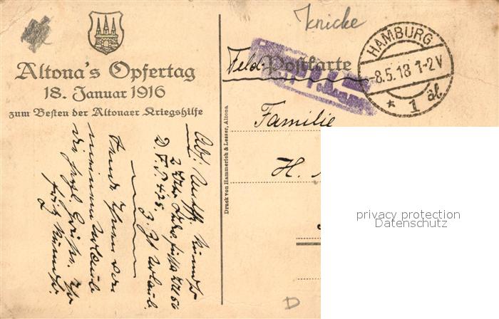 43184490 alte Postkarte Altona Hamburg Donnerschloss Zeichnung Kuenstlerkarte postalisch gelaufen Feldpost Erhaltung siehe scans [FriedD77] KatCode: 11110002000000