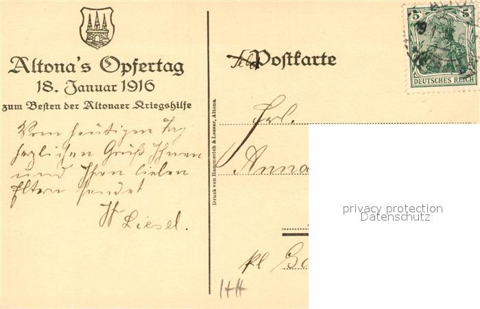 43251481 alte Postkarte Altona Hamburg Hauptkirche Zeichnung Kuenstlerkarte Altonas Opfertag 18. Januar 1916 Kriegshilfe postalisch gelaufen Erhaltung siehe scans [FriedD77] KatCode: 11110002000000
