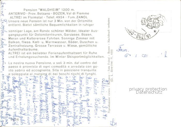 old postcard Altrei Suedtirol Pension Gaststaette Waldheim Alpenpanorama postalisch gelaufen Erhaltung siehe scans [FriedD77]