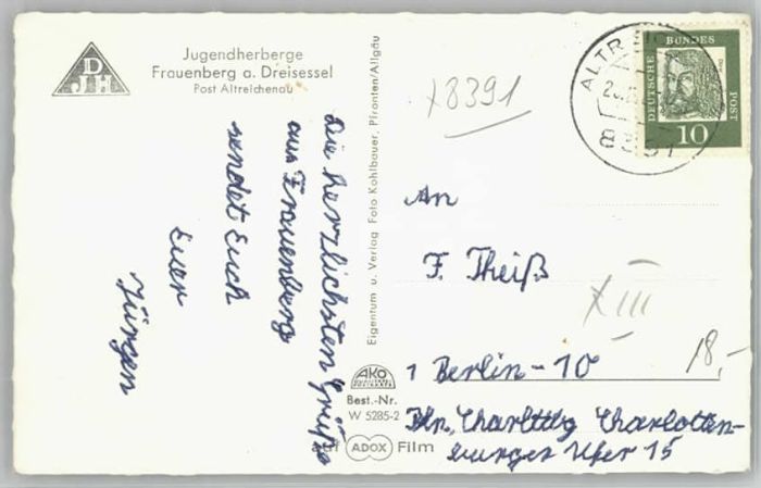 40222550 Altreichenau Jugendherberge Frauenberg Dreisessel x 1955 KatCode 11110009272136