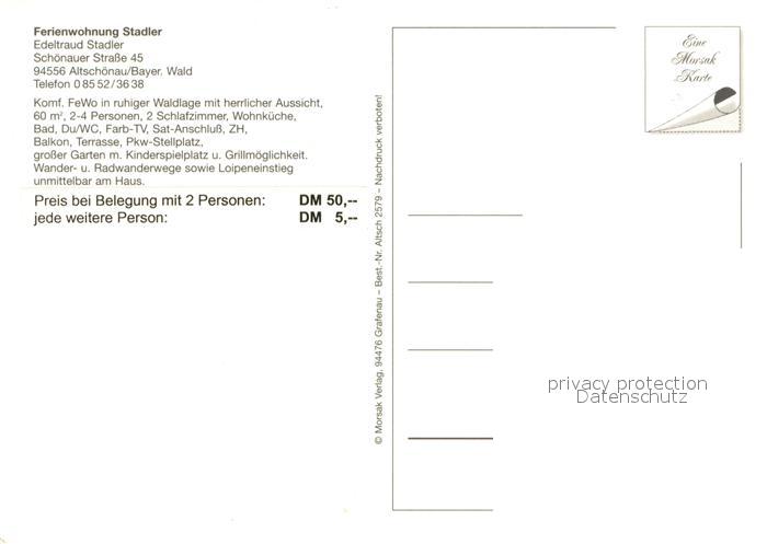 73651481 Altschoenau Ferienwohnung Stadler im Nationalpark Bayerischer Wald postalisch nicht gelaufen Erhaltung siehe scans [FriedD77] KatCode: 11110009272146