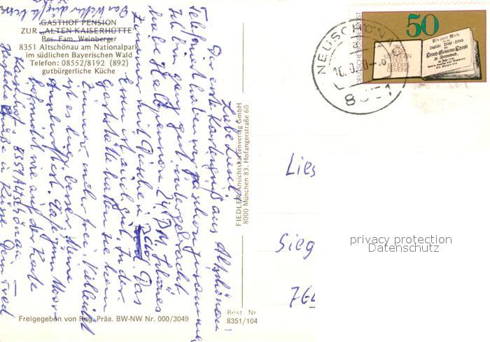 73109302 alte Postkarte Altschoenau Fliegeraufnahme postalisch gelaufen Erhaltung siehe scans [KathaD81] KatCode: 11110009272146