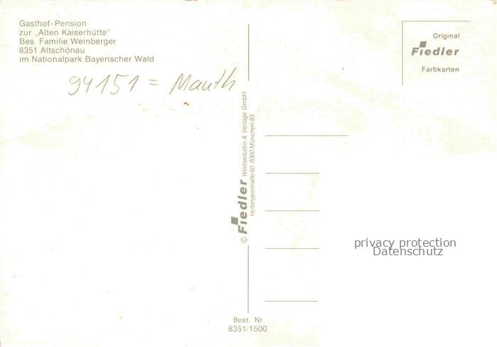 74031788 Altschoenau Neuschoenau Gasthof Pension zur Alten Kaiserhuette Gastraum Terrasse postalisch nicht gelaufen Erhaltung siehe scans [FriedD77] KatCode: 11110009272146