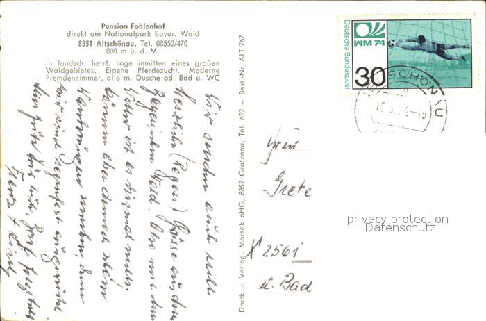 alte Postkarte Altschoenau Pension Fohlenhof postalisch gelaufen Erhaltung siehe scans