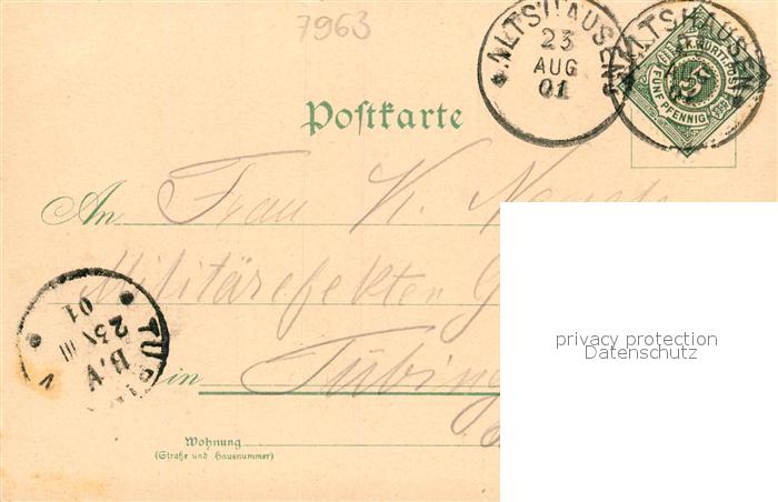 33549184 alte Postkarte Altshausen Totalansicht Rathaus Kirche Post Buchdruckerei Bahnhof Schloss Litho postalisch gelaufen Erhaltung siehe scans [FriedD77] KatCode: 11110008436005