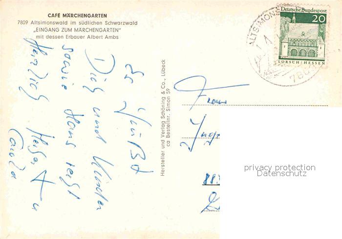 72772363 alte Postkarte Altsimonswald Cafe Maerchengarten postalisch gelaufen Erhaltung siehe scans [AndreD76] KatCode: 11110008316042