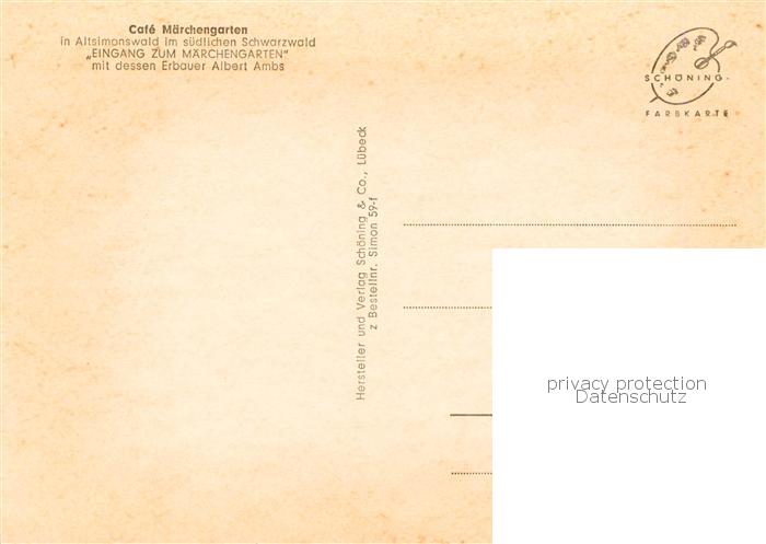 73867643 Altsimonswald Cafe Maerchengarten Eingang zum Maerchengarten postalisch nicht gelaufen Erhaltung siehe scans [WerneD78] KatCode: 11110008316042