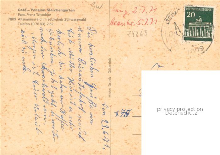73653162 alte Postkarte Altsimonswald Cafe Pension Maerchengarten postalisch gelaufen Erhaltung siehe scans [WerneD78] KatCode: 11110008316042