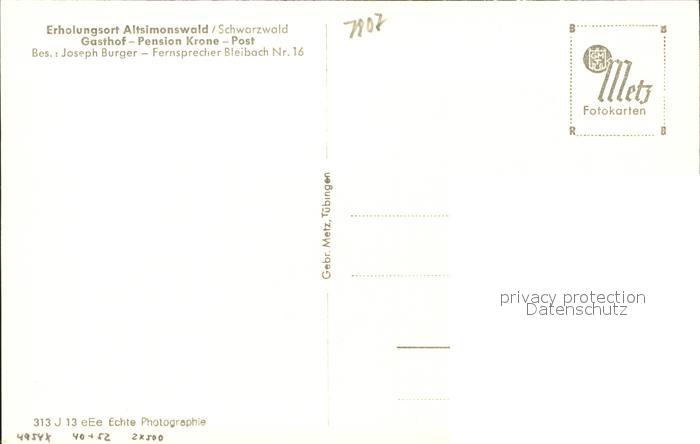 31734879 Altsimonswald Gasthaus Pension Krone-Post Auto postalisch nicht gelaufen Erhaltung siehe scans KatCode: 11110008316042