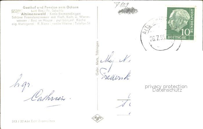 32028172 alte Postkarte Altsimonswald Gasthof Pension zum Ochsen postalisch gelaufen Erhaltung siehe scans KatCode: 11110008316042