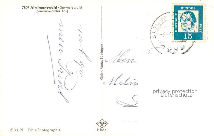 73331174 alte Postkarte Altsimonswald Ortsansicht mit Kirche postalisch gelaufen Erhaltung siehe scans [WerneD78] KatCode: 11110008316042