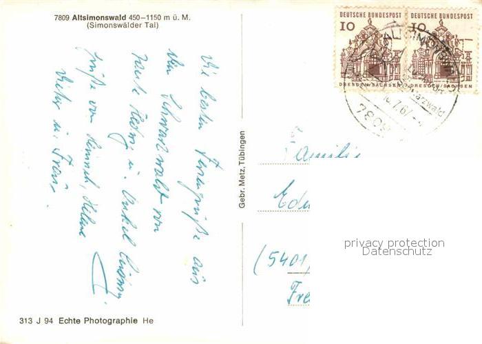 72901194 alte Postkarte Altsimonswald Simonswaelder Tal postalisch gelaufen Erhaltung siehe scans [PaolaD17] KatCode: 11110008316042