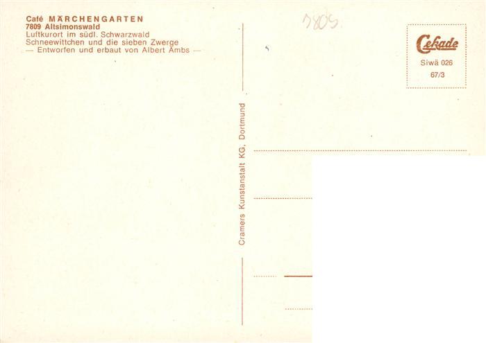73928986 Altsimonswald Simonswald BW Cafe Maerchengarten Schneewittchen und die sieben Zwerge postalisch nicht gelaufen Erhaltung siehe scans [FriedD77] KatCode: 11110008316042