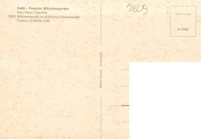 73929012 Altsimonswald Simonswald BW Cafe Pension Maerchengarten postalisch nicht gelaufen Erhaltung siehe scans [FriedD77] KatCode: 11110008316042