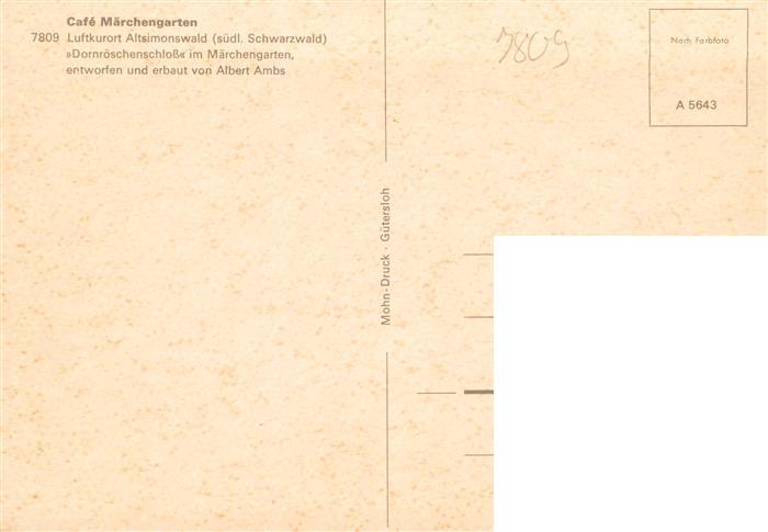73932840 Altsimonswald Simonswald BW Cafe Pension Maerchengarten Dornroeschen im Maerchengarten postalisch nicht gelaufen Erhaltung siehe scans [FriedD77] KatCode: 11110008316042