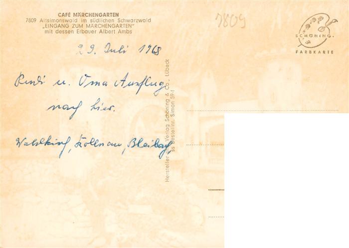 73932800 Altsimonswald Simonswald BW Cafe Pension Maerchengarten Eingang mit Albert Ambs postalisch nicht gelaufen Erhaltung siehe scans [FriedD77] KatCode: 11110008316042