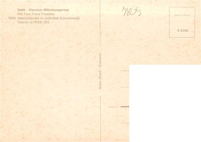 73929306 Altsimonswald Simonswald BW Cafe Pension Maerchengarten postalisch nicht gelaufen Erhaltung siehe scans [FriedD77] KatCode: 11110008316042