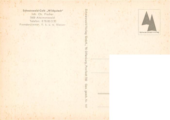 73932818 Altsimonswald Simonswald BW Schwarzwald Cafe Wildgutach Gaststube postalisch nicht gelaufen Erhaltung siehe scans [FriedD77] KatCode: 11110008316042