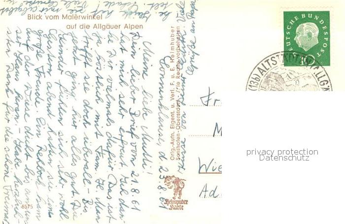 73153957 alte Postkarte Altstaedten Allgaeu Blick vom Malerwinkel postalisch gelaufen Erhaltung siehe scans [LiesaD40] KatCode: 11110009780139