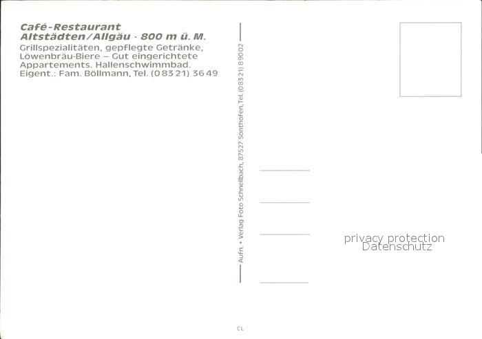 72255495 Altstaedten Allgaeu Cafe Restaurant Hallenbad Alpenpanorama postalisch nicht gelaufen Erhaltung siehe scans KatCode: 11110009780139