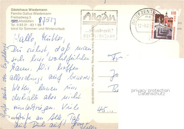 73654336 alte Postkarte Altstaedten Allgaeu Gaestehaus Wiedemann Gaststube Panorama postalisch gelaufen Erhaltung siehe scans [WerneD78] KatCode: 11110009780139