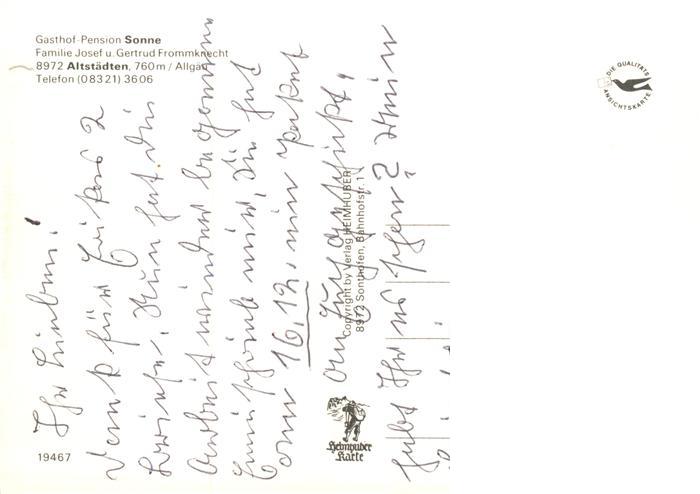 73883504 Altstaedten Allgaeu Gasthof Pension Sonne postalisch nicht gelaufen Erhaltung siehe scans [WerneD78] KatCode: 11110009780139