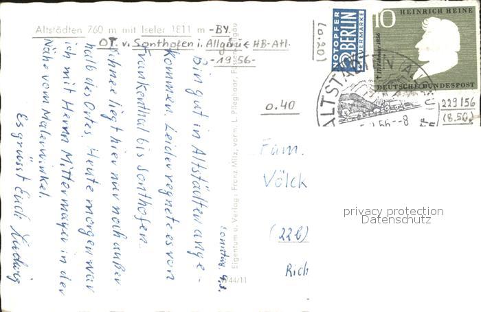 72312689 alte Postkarte Altstaedten Allgaeu Iseler postalisch gelaufen Erhaltung siehe scans KatCode: 11110009780139