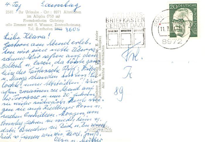 73879526 alte Postkarte Altstaedten Allgaeu Panorama Alpen Fremdenheim Gehring postalisch gelaufen Erhaltung siehe scans [FriedD77] KatCode: 11110009780139