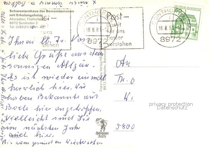 73655679 alte Postkarte Altstaedten Allgaeu Schwesternhaus Erholungsheim der Borromaeerinnen postalisch gelaufen Erhaltung siehe scans [WerneD78] KatCode: 11110009780139