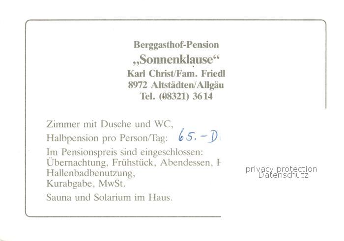 73049061 Altstaedten Allgaeu Sonnenklause Hallenbad Gastraum Panorama postalisch nicht gelaufen Werbekarte (keine Postkarte) Erhaltung siehe scans [KathaD81] KatCode: 11110009780139