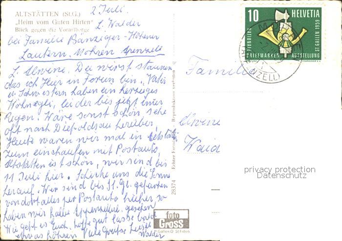 11629688 alte Postkarte Altstaetten SG Teilansicht mit Heim vom Guten Hirten Blick gegen Vorarlberge postalisch gelaufen Erhaltung siehe scans KatCode: 11470190555554