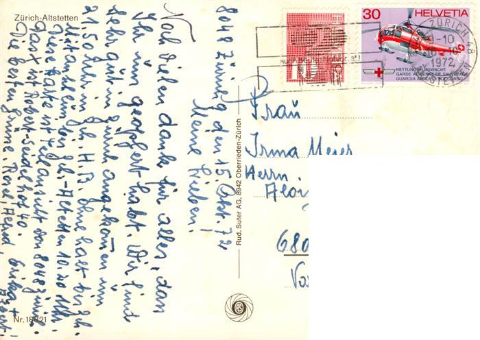 13909222 alte Postkarte Altstetten Zuerich ZH Fliegeraufnahme postalisch gelaufen Erhaltung siehe scans [FriedD77] KatCode: 11470260920558