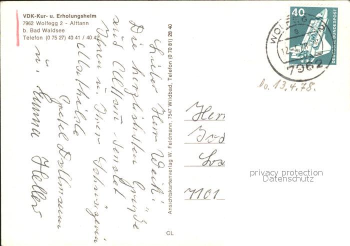 71924617 alte Postkarte Alttann Allgaeu Erholungsheim postalisch gelaufen Erhaltung siehe scans KatCode: 11110008436085