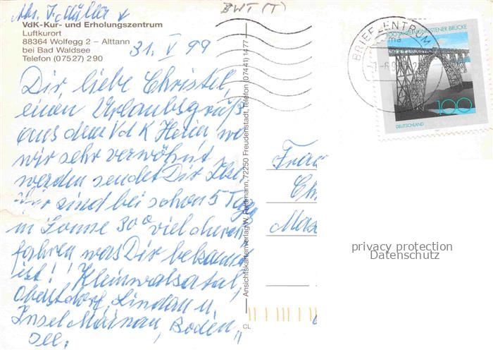 74026353 alte Postkarte Alttann Allgaeu Teilansichten Luftkurort VdK Kur- und Erholungszentrum Hallenbad Restaurant Park postalisch gelaufen Erhaltung siehe scans [FriedD77] KatCode: 11110008436085