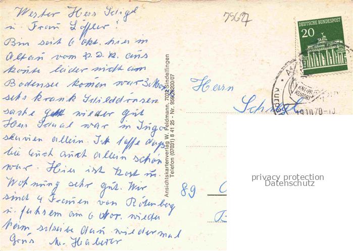 74053384 alte Postkarte Alttann Allgaeu Teilansichten Parkpartie Springbrunnen Kirche postalisch gelaufen Erhaltung siehe scans [WerneD78] KatCode: 11110008436085