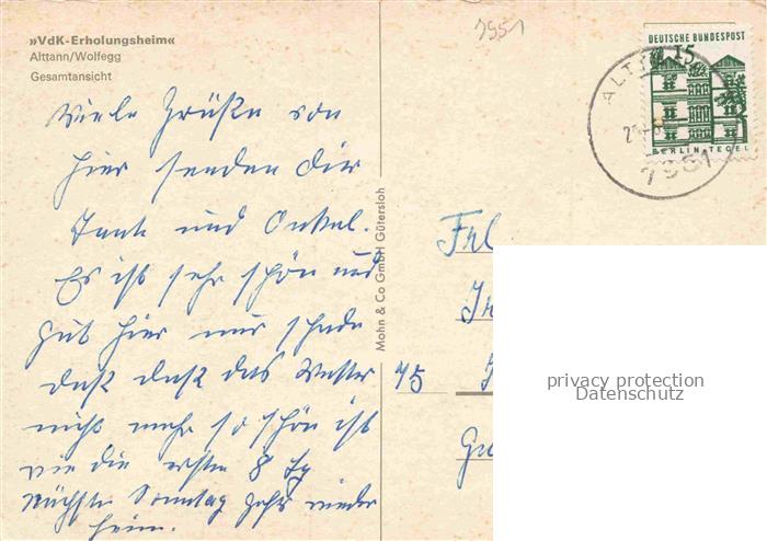 74050792 alte Postkarte Alttann Allgaeu VdK Erholungsheim postalisch gelaufen Erhaltung siehe scans [WerneD78] KatCode: 11110008436085