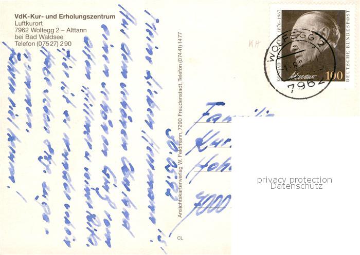 73787838 alte Postkarte Alttann Allgaeu VdK Kur und Erholungszentrum Terrasse postalisch gelaufen Erhaltung siehe scans [WerneD78] KatCode: 11110008436085