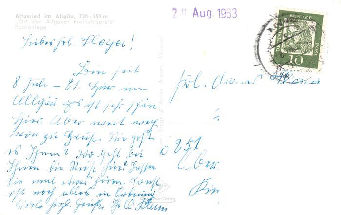 73948879 alte Postkarte Altusried Bayern Parkanlage Ort der Allgaeuer Freilichtspiele postalisch gelaufen Erhaltung siehe scans [FriedD77] KatCode: 11110009780112