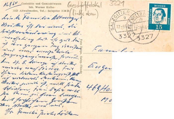 73868459 Altwallmoden Salzgitter Gaststaette Teilansichten Kirche Dorfteich postalisch gelaufen Erhaltung siehe scans [FriedD77] alte Postkarte Frie Katcode 11110003102000