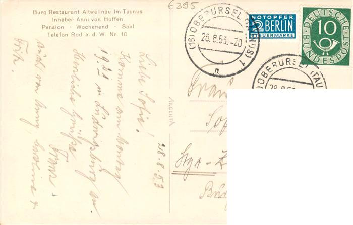 73899660 alte Postkarte Altweilnau Alt-Weilnau Weilrod Blick vom Burg Restaurant postalisch gelaufen Erhaltung siehe scans [FriedD77] KatCode: 11110006434013