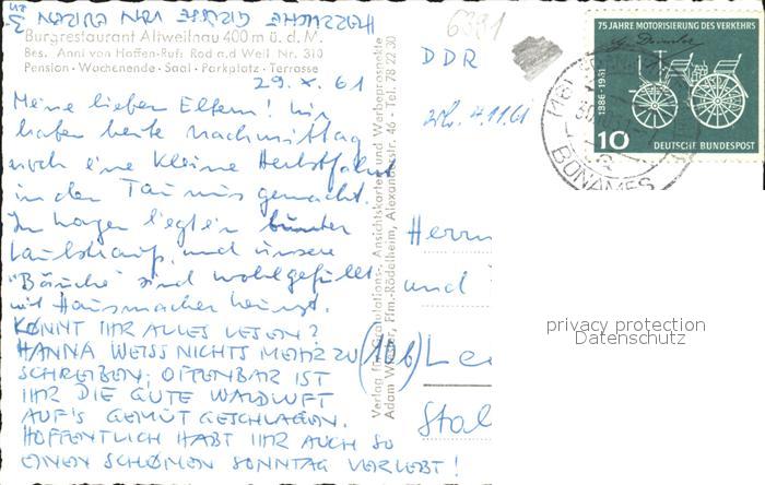 72100619 alte Postkarte Altweilnau Burgrestaurant Altweilnau postalisch gelaufen KatCode: 11110006434013