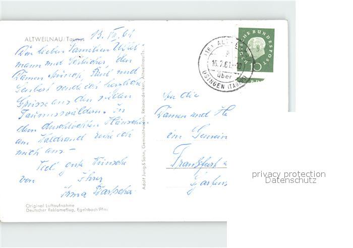 32184643 alte Postkarte Altweilnau Fliegeraufnahme postalisch gelaufen Erhaltung siehe scans KatCode: 11110006434013