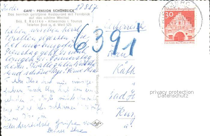 72100620 alte Postkarte Altweilnau Fliegeraufnahme Cafe Pension Schoenblick postalisch gelaufen Erhaltung siehe scans KatCode: 11110006434013
